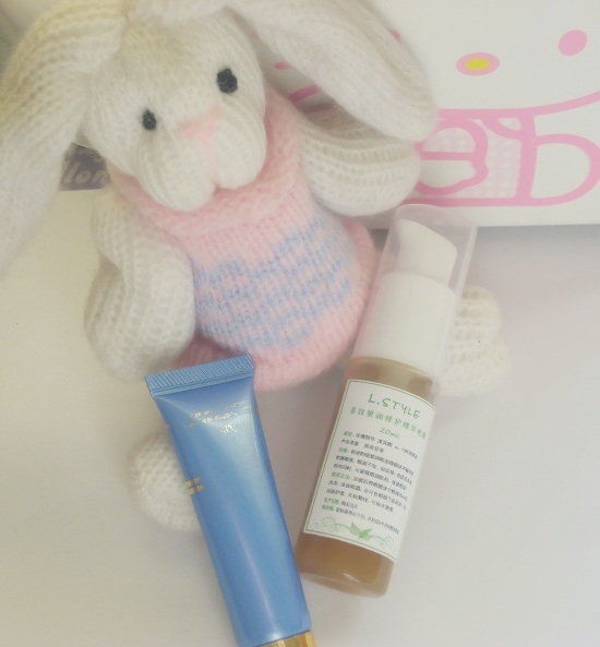 旁边的蓝色瓶子是一款修护精华眼膜,在韩国做空姐的蜜从韩国美容院带回来给我的,