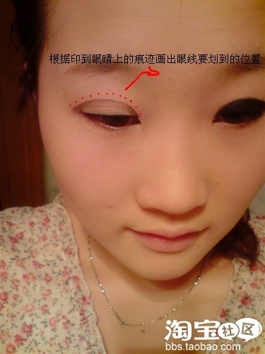 根据眼睛上印到的地方画出整个眼线的轮廓!