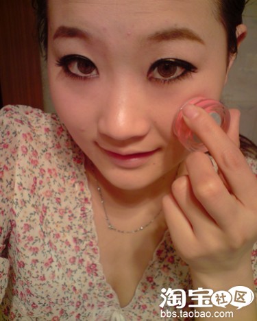 然后用粉扑上的余粉按压一下刚涂得晒红!