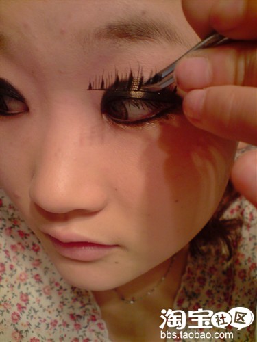 贴假睫毛!