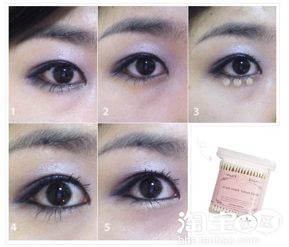 这时候,用棉棒蘸些水,尽量弄干净黑黑的部分,再用遮瑕膏在下眼帘点点,拍打和周围肌肤融合以后,在补一些粉上去就可以了。