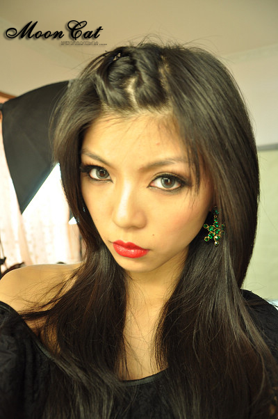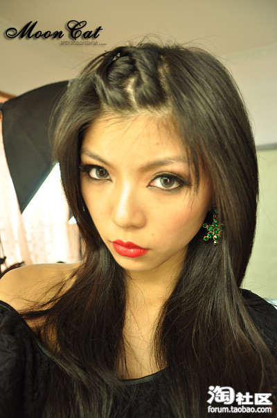 OK完了。带个很夸张的耳环··耳环好重~~~没擦口红的时候觉得妖气没那么重,不过某人说,红配绿呀才够坏~~!~