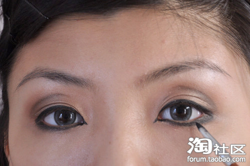 画了那条线记得用海绵棒把它晕自然。然后用最黑的眼线膏画眼线,前面一定要开眼角。才会显得尖酸刻薄像。