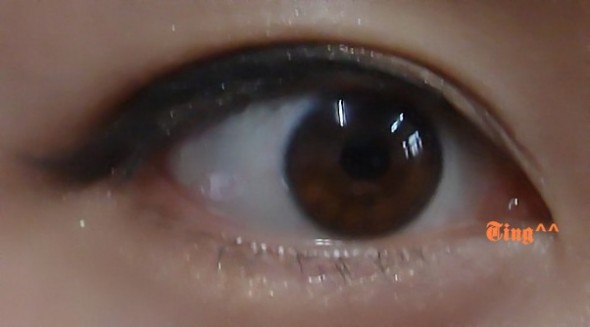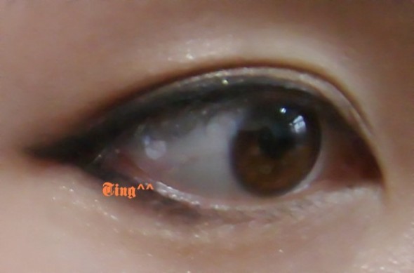 睁眼看看,本身tingting的双眼皮摺比较厚,睁眼之后眼线一粗就容易卡在摺里面了,这时候我都会适当的用棉花棒去擦除一点点。