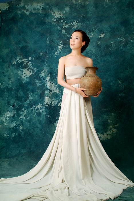 也不去拍,她没办法,拿掉了假发,给我披着头发戴了一点头饰。后来我同学看到我这套衣服的造型时说我的脸型并不适合披头发,盘头发最好看。可是,我六套衣服啊,有三套是披头发的,只有一套是盘头发的,还忒难看(象个鸡蛋立在头上,显得脑袋尖尖的),以至于我都没想到我竟然还是适合盘发的!