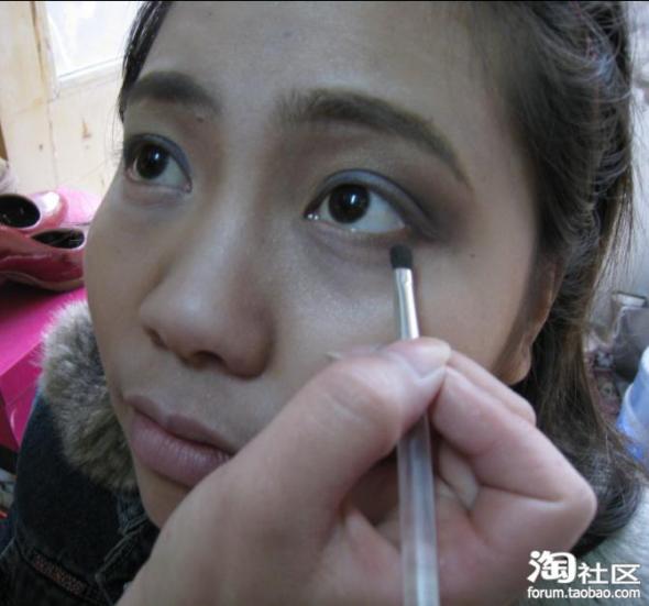 眼妆差不多了哦,记得下眼皮要用深色做个小眼袋出来哦,比较自然也好看