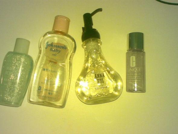2:强生婴儿润肤油:呵呵,我有的时候用它来卸妆,不过用完了以后一定要用洁面乳彻底在清洁,要不然会容易长脂肪粒的。
