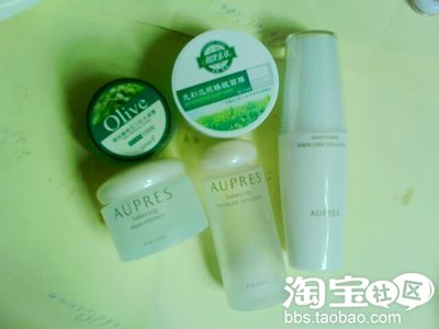 保湿乳、霜上左起:⑴olive精纯橄榄活力补水凝霜:这个乜是在网上淘的,效果不错,亮绿色,像果冻一样