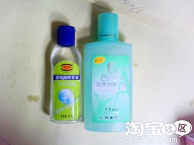 甘油 左起:⑴馥姵植物精粹甘油:纯植物的,很不错,冬天搽护手霜的时候滴两滴在手心和护手霜混合使用,滋润效果很好,才3元一瓶,很划算