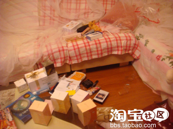 刚回来拆东西,丢的到处都是。