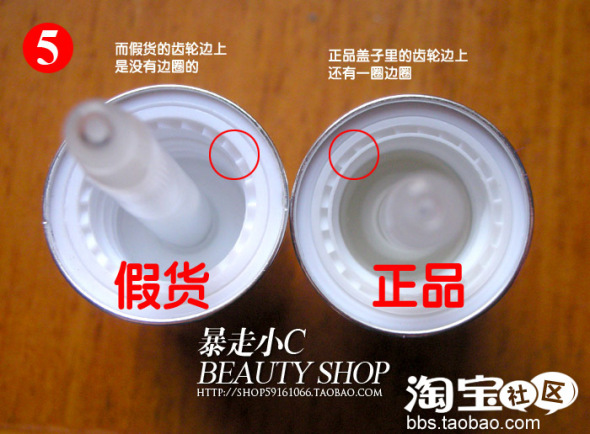 下面的图片不是我自己拍的,是借用了小C mm的,我买的就是左边的那个假的(仿了太像了,用了脸还很滑,估计是放了滑石粉了)也给姐妹们提个醒啊,假货泛滥,大家睁大眼睛啊!!!