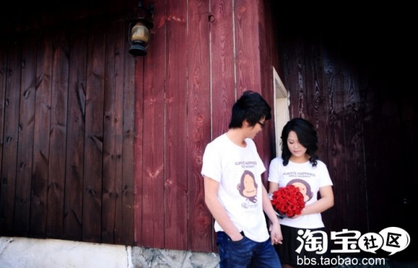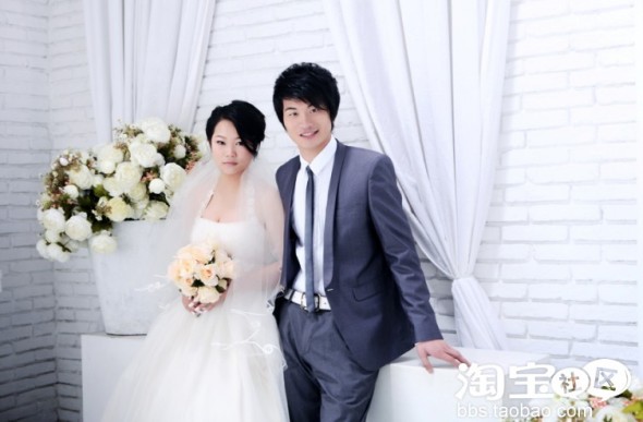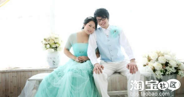 结婚照中的男道具和女道具从幼儿园就相识了,男道具家在女道具的外婆家边。就这样,一起玩大了。
