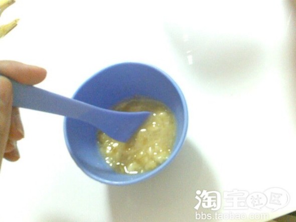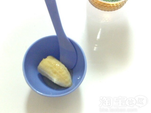 将蜂蜜调和香蕉,用汤匙捣成泥状