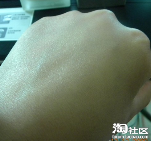 擦在手背上的效果,我的皮肤是算比较黄的。