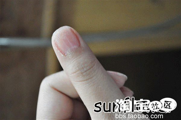 指头向下弯 吹粉从指甲后方向前方吹 最后用嘴将上面的浮粉吹掉