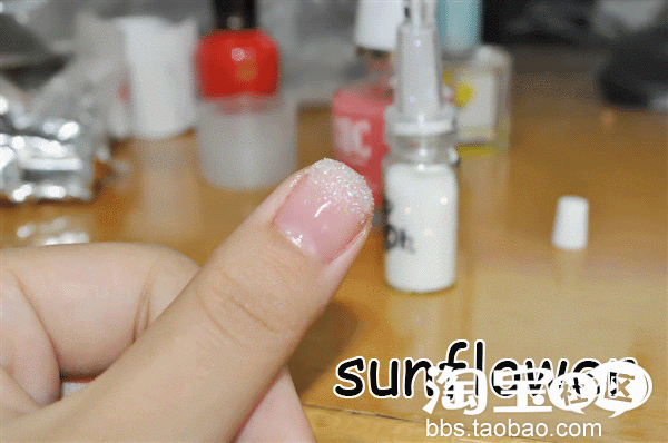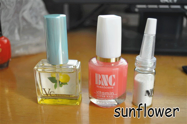 1.VC亮油(柠檬的~超香) 2.底油 3.吹粉(市面上有很多颜色)