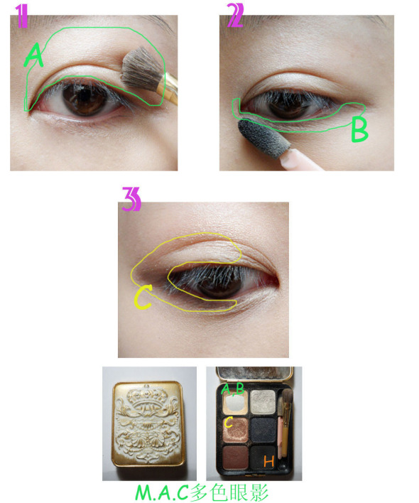 3.用C在上下眼皮圈住后2/3部分涂抹(图3)