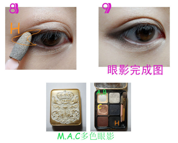 1.用H在双眼皮贴睫毛根部后1/3处拉长涂抹(图8)
