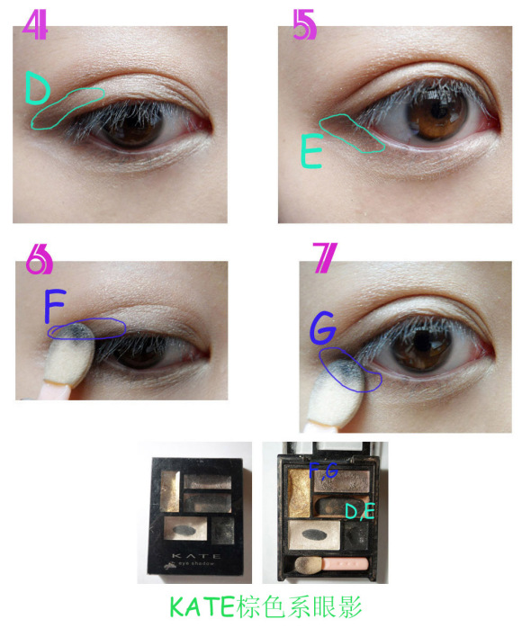 4.用G在下眼皮1/3处涂抹,盖过E(图7)