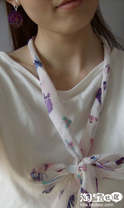 也可以把丝巾固定在衣服上 令一种风格就会出现了
