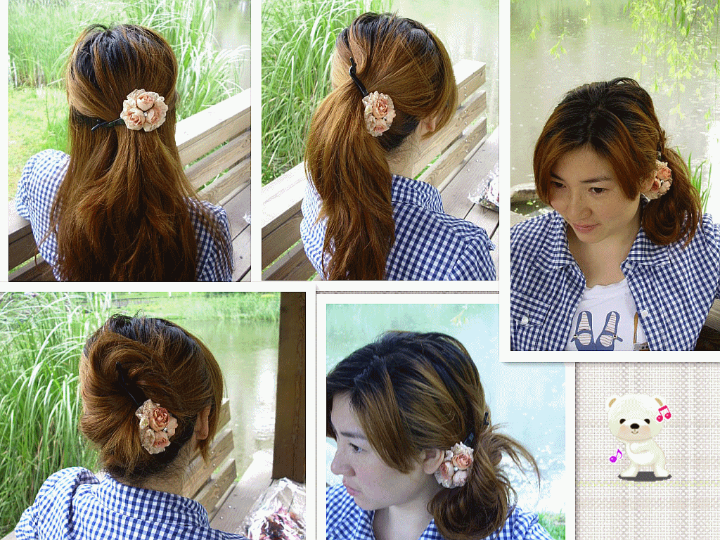 以下是扭夹,盘扎披发都可以哦,做出来的头发也很漂亮呢,而且简单易学,每天只需要抽出一到两分钟时间就可以轻松搞定各种发型了