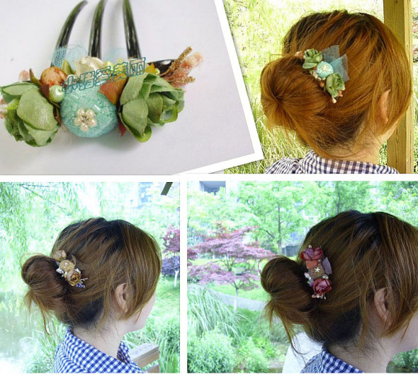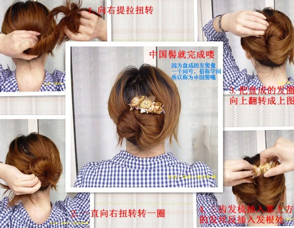 以下是插梳,做好苞苞头后,直接放入头发根部的右上侧就好了