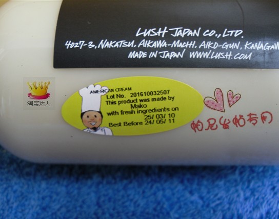 从标签来看,产品是非常新鲜的,而且保质期的时间比较短。10.3.25——11.5.24 。差不多一年的时间。帕尼也特地对比了一下家里其他的美发产品,保质期基本都在2年以上。从这里可以看出,LUSH家的产品更加的天然,因为添加剂少了,所以保质期才比较短~