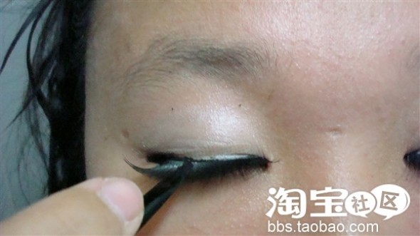 在哪珠光把前面剩下的眼线补上,当然还有眼角