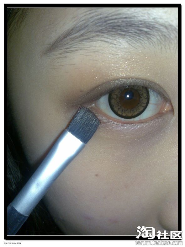 (最后用深棕色画下眼线,眼尾的位置,视觉上增大眼睛的效果)
