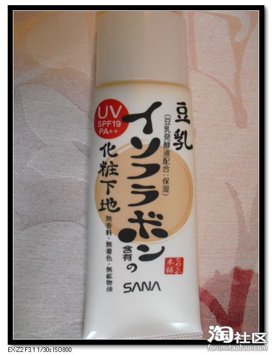 SANA豆乳隔离霜,这款隔离很自然,不会假白,很清爽的一款,一点也不油腻。喜欢自然的MM可以试试。性价比高的一款。