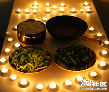 但是我亲爱的J,帮我过了提前的情人节,昨天下班早早的来我家,亲自下厨为我做了几个小菜,虽然连家里的锅都用上了,汗……不过摆放的还是好用心啊,味道我就不说什么了,哈哈。