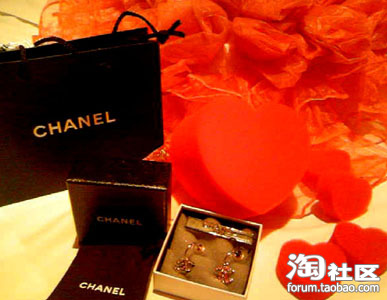 然后是上情人节礼物,是香家的logo耳环,用手机拍的,不清楚。