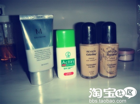 粉底我用的是露华浓不脱色粉底液 混合性/油性肌肤~已经使用2个了~208米~粉底我还是比较舍得花银子的~否则脸会变黄吧~呵呵~(个人认为哈)这个还不错,我买的自然色,脸上的痘印还可以掩盖,不过我还是要对个别部位使用遮瑕膏的~像是眼袋啦~个别痘印啦~这个银色的是谜尚的bb霜,有点小油,基本闲置了~只化半天妆时使用~哈哈~我基本是中午起床~~遮瑕膏忘记拍图了,是谜尚的一款~很小的一个圆圆的小盒子~
