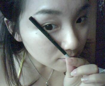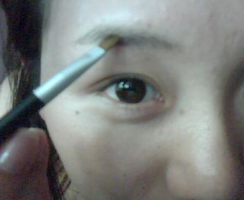 色色一般是用深棕色来画眉,MM们要根据自己的发色和眼珠色哦~ 先从眉峰开始下笔,勾好眉尾后,用刷子上的余粉慢慢往眉头晕开来,这样才不会把自己画成 小新 ~ 嘿嘿