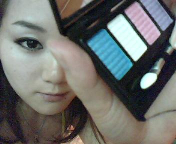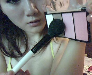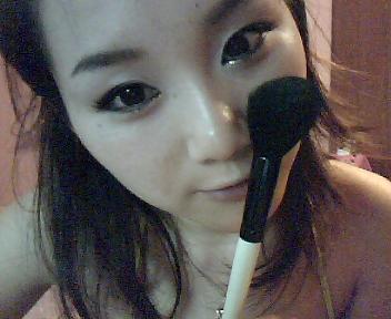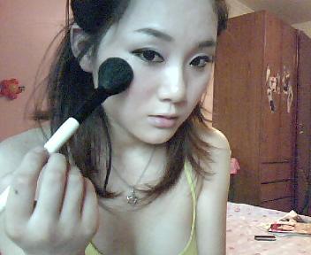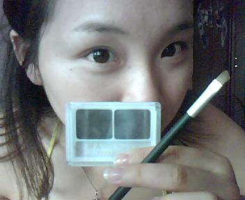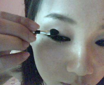 啦啦啦~ 最世界最好用的东西又闪亮登场了!还是眉粉哦,用小刷子沾取相对深的颜色在上眼线的上面以打小圈的方式晕染一层!注意:第一笔要放在眼尾哦,不要整个双眼皮都染上,那样会很傻没层次,染到一半就可以了,眼头的部分轻轻带过,有点颜色就行,但不能深!切记哦~