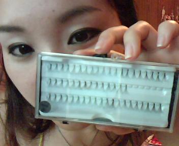 色色用的是小束的假睫毛,MM们喜欢用整体的也可以啦,但要注意只戴眼尾1/4的地方就行,不然会太假,坛子里好多假睫毛教程,这里色色就不重复了哦!~