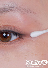 画完眼线后,用棉花棒沿着眼线的边缘慢慢小范围地晕染,让眼线跟眼影自然地过渡,这样才能画出最自然的眼线。