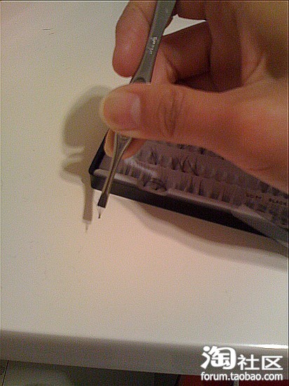 取出睫毛 沾上胶水 半干时再粘 不要贴在真毛上 不然拆的时候会连真毛一起拿下来 贴的真毛根部的皮肤上就OK啦