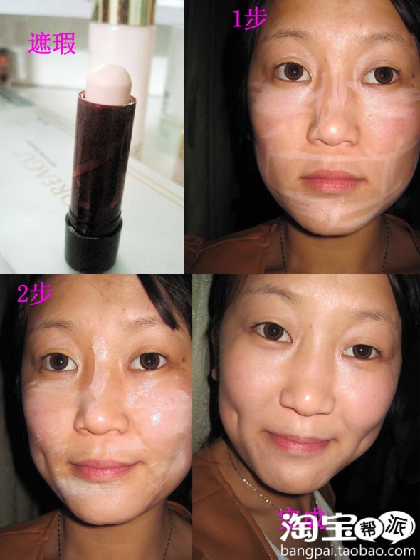 先把遮瑕膏涂上,然后一步一步的抹开,最后抹完就那个效果啦