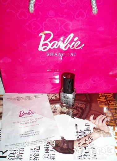 芭比的指甲油。专柜48元。闪亮的颗粒很大。就算单涂。效果也很好。也不容易掉色