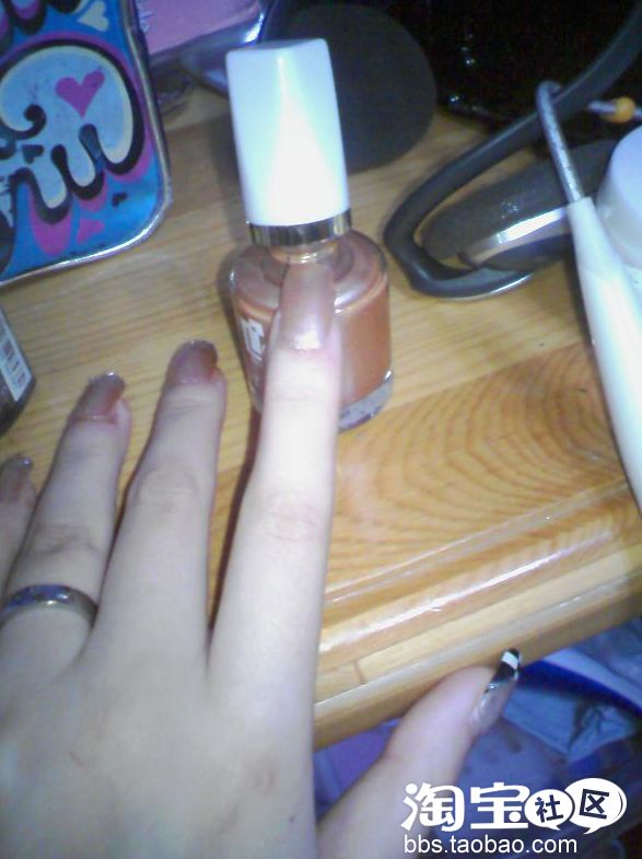 擦上奶茶色的指甲油。我用的是很便宜的LETE,反复2次