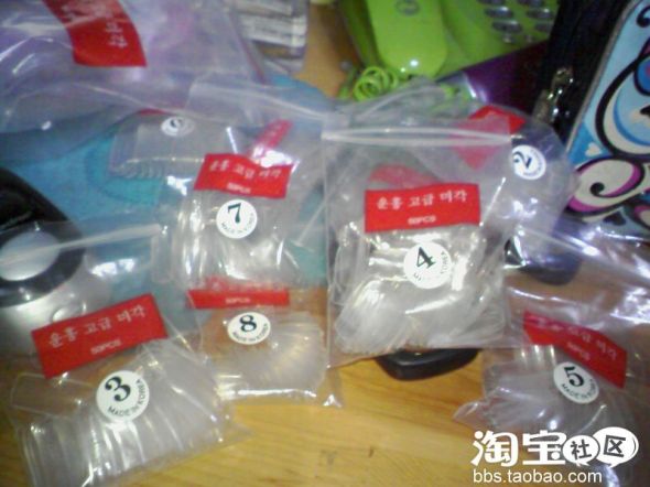 TB买的指甲。很好。有0-9.。好像是吧。反正各种各样尺寸大小的。长了就用剪掉。也不会有白印记