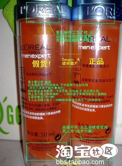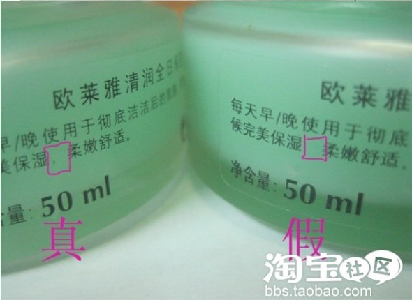 真货欧莱雅的字母比较清晰。假货字母发暗 不太清晰