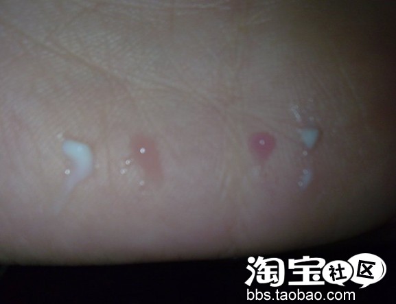 瓶底,左边是专柜的正品,两个小圆圈,而右边的是假货,底部是一个X,这点与另一个淘友发的帖子一致,假货的底部是个X。而且两管直接的距离很近