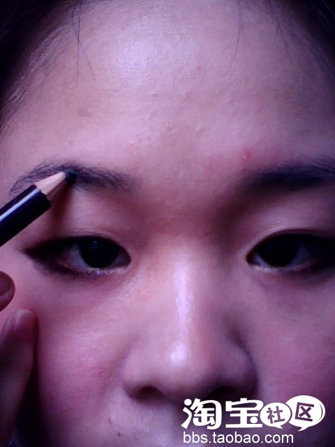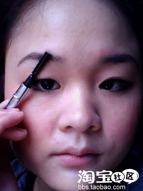 画眉毛,用眉笔轻轻的描画,注意从眉毛中部开始往眉尾画,眉头不要画,因为眉头本来就是眉毛最多的地方,画深了会显的人凶巴巴的哦。。。