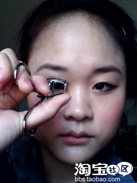 夹睫毛,看见没有,我夹睫毛都不是直接放着夹的,夹住睫毛然后分3段45度角往上夹,手抬到水平位置。睫毛根部中部和尾部都要夹到这样才漂亮。。