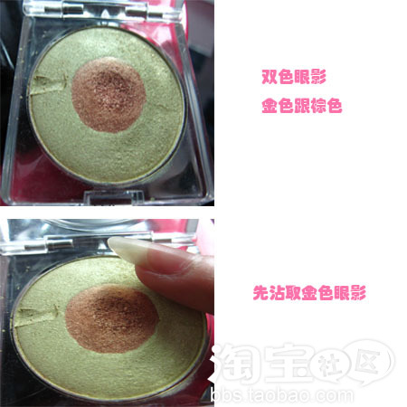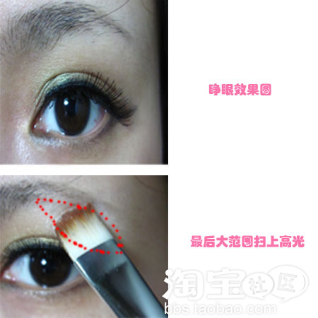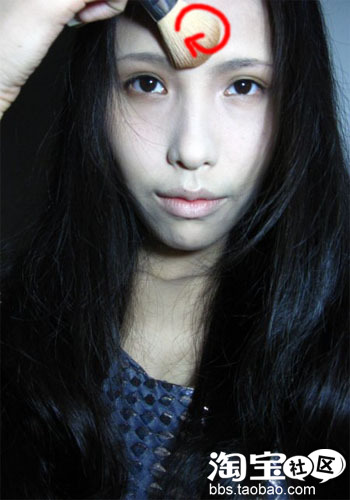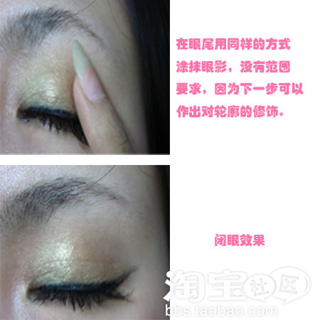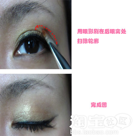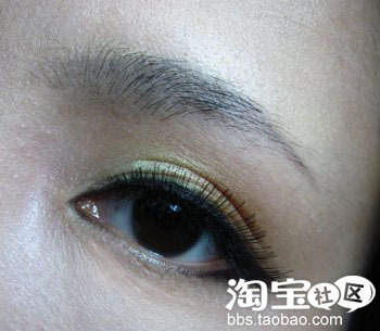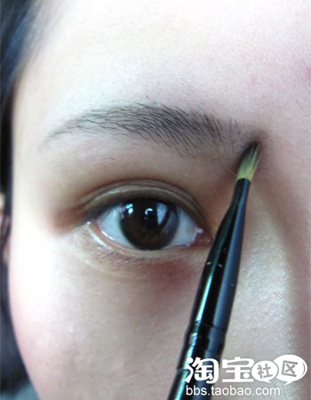 涂的时候范围小点,不用太注意轮廓,因为最后还是要用眼影刷晕出轮廓的.