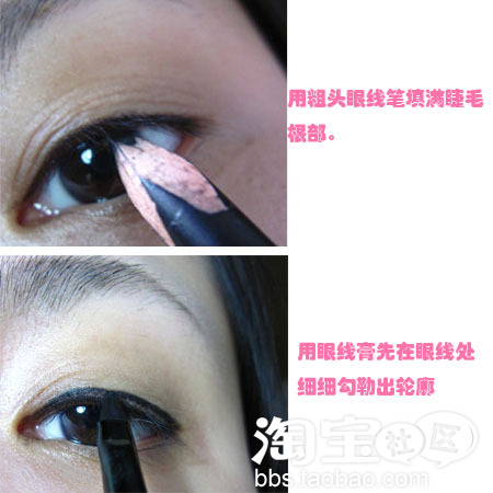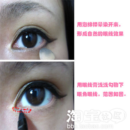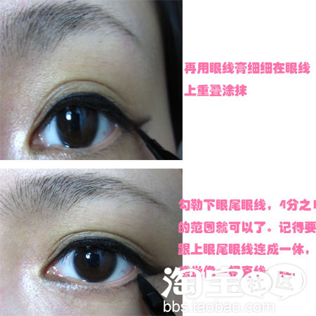 不满意轻轻一擦就掉了,等到满意了,再用眼线膏或者眼线液仔细重叠就可以了
