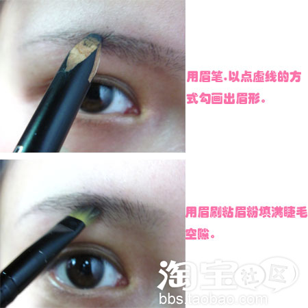 这样眉形才不会明显,再用眉粉涂抹才会更加自然.