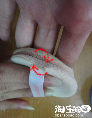 把2块粉扑合在一起,相互摩擦,